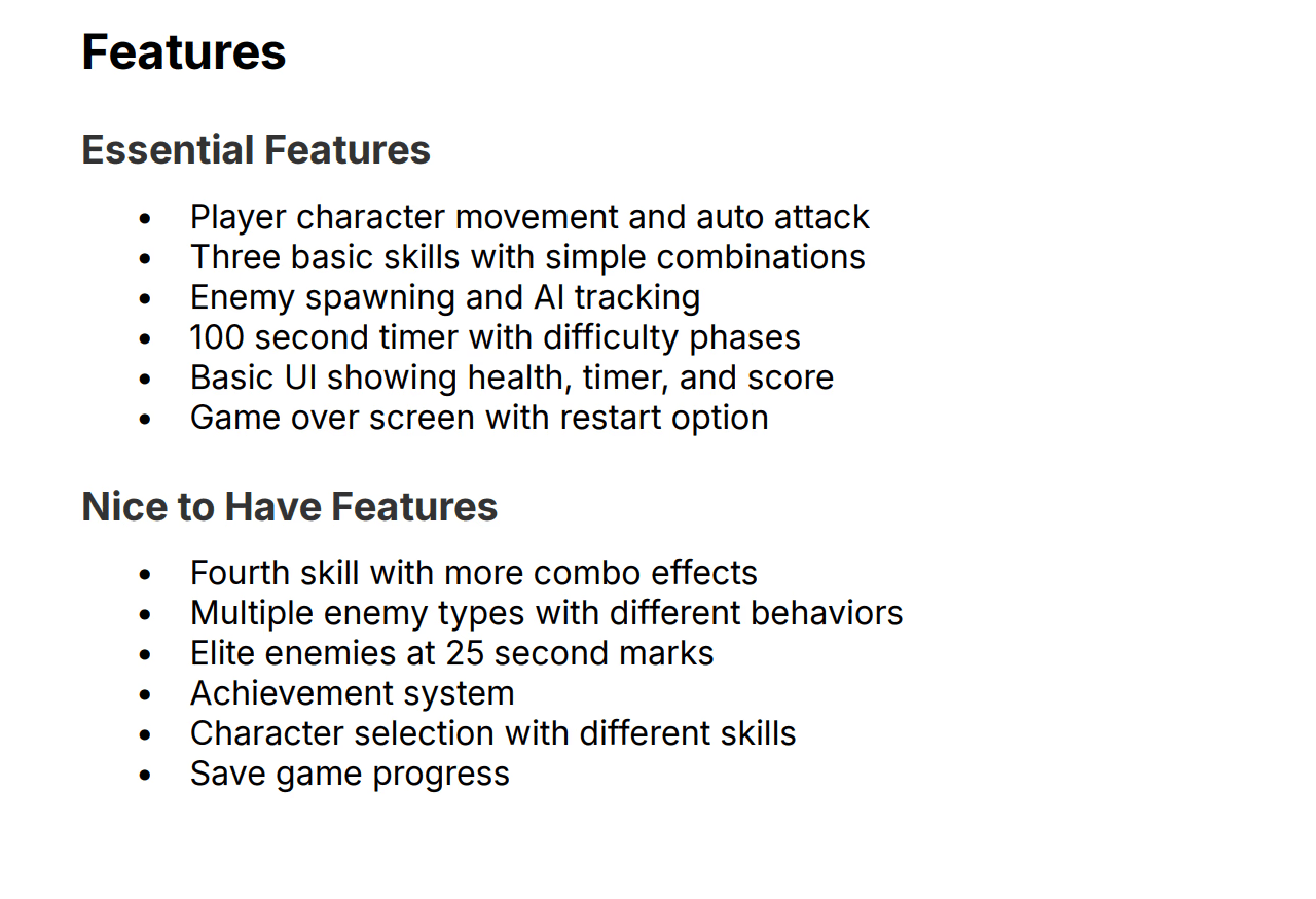 Deliver intense, bite-sized survival moments where split-second movement decisions and strategic skill combinations create escalating tension and satisfying power progression within a focused 100-second experience.