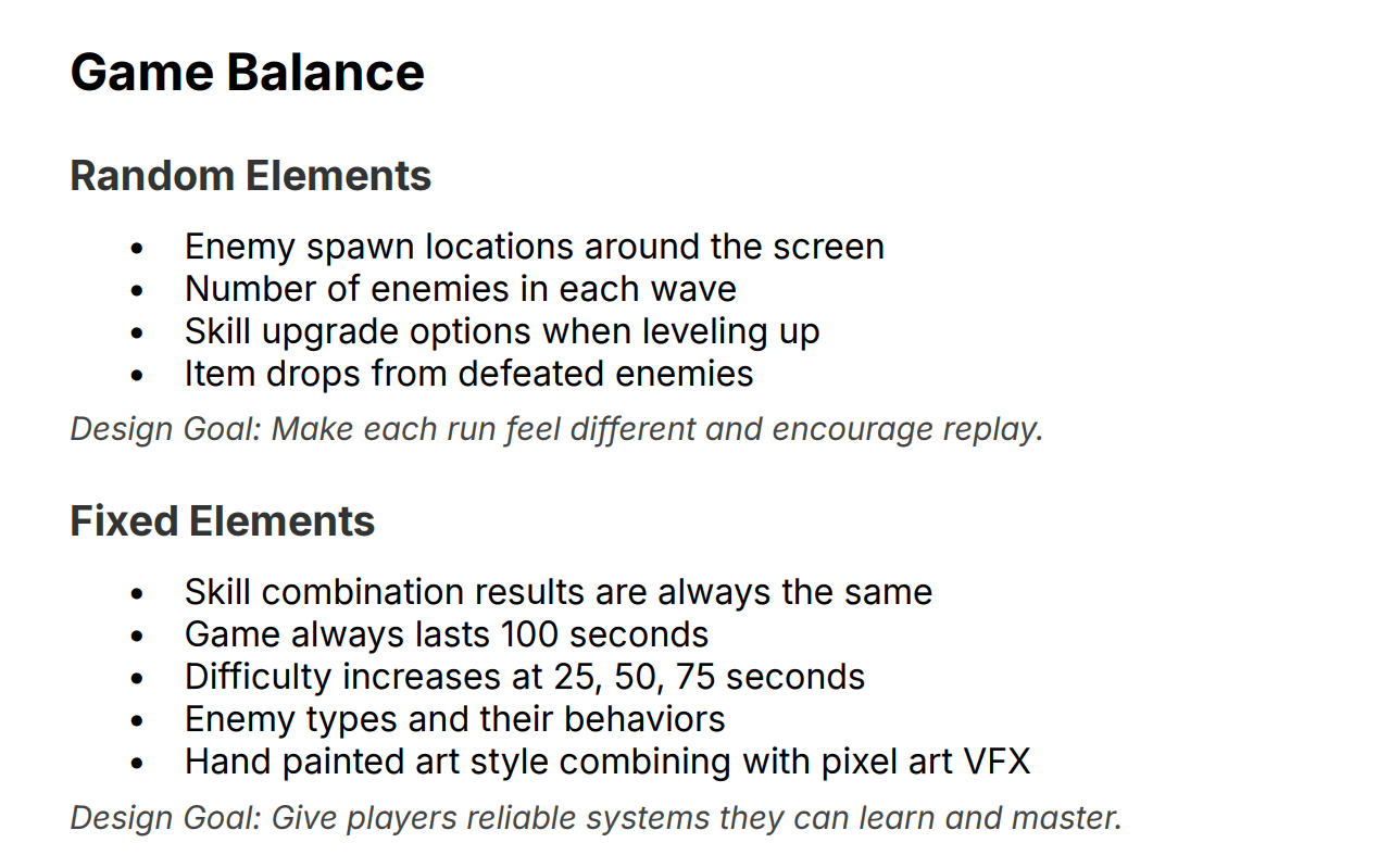 To position 100's At Night within the survival roguelike genre, I analyzed three core competitors that shaped the design direction of this project. This analysis focused on session length, control mechanics, skill progression systems, and difficulty pacing to identify opportunities for innovation.